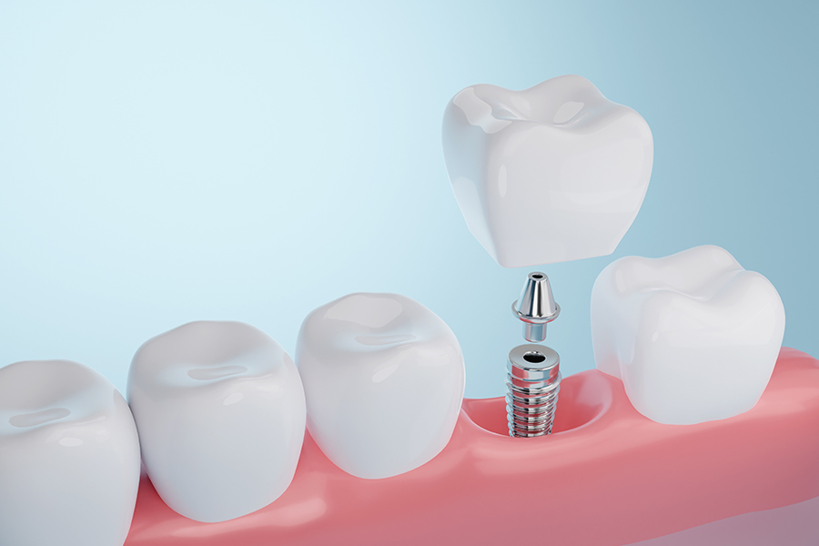 インプラント治療とは、歯が失われてしまった部分に人工の歯を埋入する治療のことです。人工の歯根を顎の骨の中に埋め込み、その上に人工の歯を固定します。